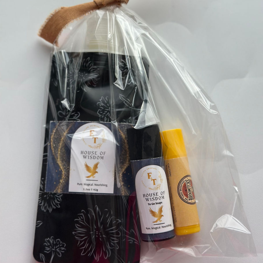 Embark on enlightened adventures with the House of Wisdom Travel/Park Day Pack, a trio of travel-ready essentials inspired by wisdom, clarity, and serene focus. Whether you’re exploring magical theme parks or pondering life’s mysteries, this pack keeps your skin nourished and your mind sharp with portable, insightful skincare.